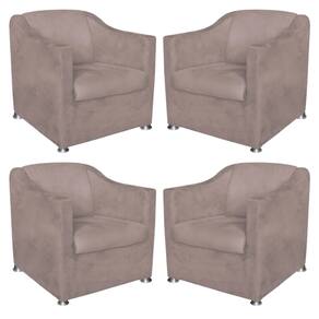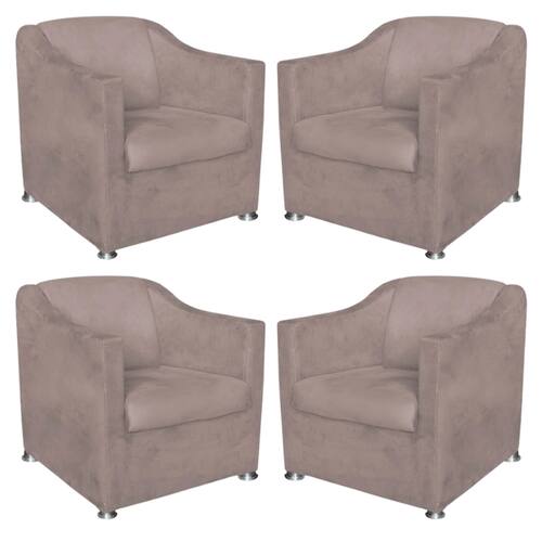 Kit 4 Poltronas Bia Decorativa Reforçada Recepção Clinica Salão Sala De Estar Suede - Marrom Cacau