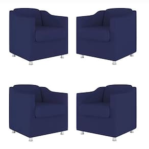 Kit 4 Poltronas Bia Decorativa Reforçada Recepção Clinica Salão Sala De Estar Suede - Azul Marinho