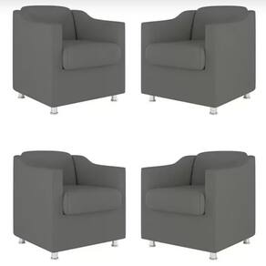 Kit 4 Poltronas Bia Decorativa Reforçada Recepção Clinica Salão Sala De Estar Suede - Cinza