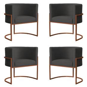 Kit 4 Poltronas Decorativa Luana Base Bronze Veludo Cinza uma Poltrona que trás vida ao seu ambiente. A Poltrona Luana é a mais inovadora do momento, com sua base em metal deixa o design mais sofisticado, e claro o conforto que essa Poltrona proporciona. Cada detalhe feita com matéria-prima de ótima qualidade, garantindo durabilidade do produto.