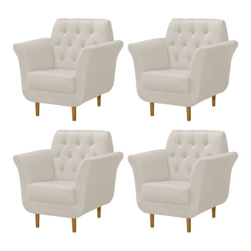 Kit 4 Poltronas Decorativa Pés Palito em Madeira Playa Linho Crú - Bege