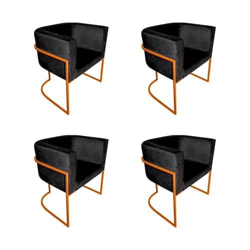 AS IMAGENS SÃO MERAMENTE ILUSTRATIVAS E PODEM SOFRER VARIAÇÕES DE COR E PEQUENOS DETALHES DE ACORDO COM O SEU MONITOR, ILUMINAÇÃO DO AMBIENTE E ATÉ MESMO A SUA PERCEPÇÃO VISUAL.Kit 4 Poltronas Decorativa Sala De Estar Base De Ferro Cobre Veludo Preto