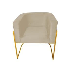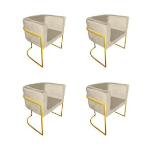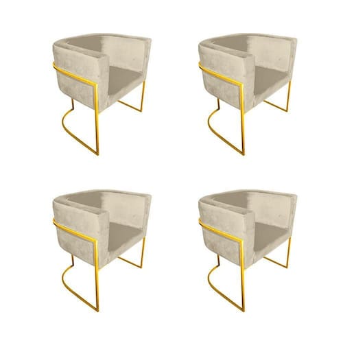 AS IMAGENS SÃO MERAMENTE ILUSTRATIVAS E PODEM SOFRER VARIAÇÕES DE COR E PEQUENOS DETALHES DE ACORDO COM O SEU MONITOR, ILUMINAÇÃO DO AMBIENTE E ATÉ MESMO A SUA PERCEPÇÃO VISUAL.Kit 4 Poltronas Decorativa Sala De Estar Base De Ferro Dourada Veludo Bege