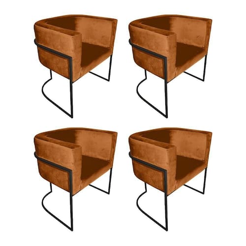AS IMAGENS SÃO MERAMENTE ILUSTRATIVAS E PODEM SOFRER VARIAÇÕES DE COR E PEQUENOS DETALHES DE ACORDO COM O SEU MONITOR, ILUMINAÇÃO DO AMBIENTE E ATÉ MESMO A SUA PERCEPÇÃO VISUAL.Kit 4 Poltronas Decorativa Sala De Estar Base De Ferro Preta Veludo Terracota