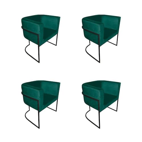 AS IMAGENS SÃO MERAMENTE ILUSTRATIVAS E PODEM SOFRER VARIAÇÕES DE COR E PEQUENOS DETALHES DE ACORDO COM O SEU MONITOR, ILUMINAÇÃO DO AMBIENTE E ATÉ MESMO A SUA PERCEPÇÃO VISUAL.Kit 4 Poltronas Decorativa Sala De Estar Base De Ferro Preta Veludo Verde