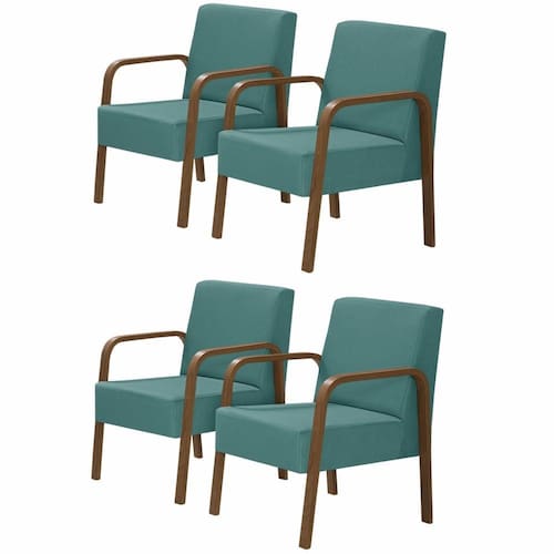 Kit 4 Poltronas Decorativas 1 Lugar Jade Braço Madeira DSalla Suede - Azul Turquesa