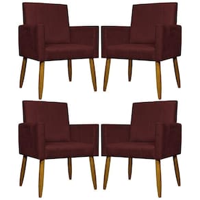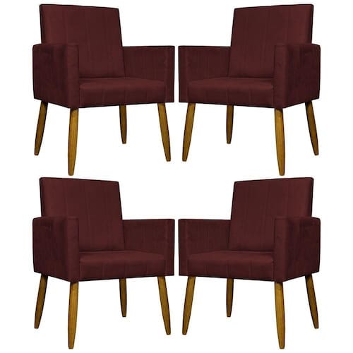 KIT 4 POLTRONAS MARI SUEDE CORES PÉ PALITO 30 CM CASTANHO