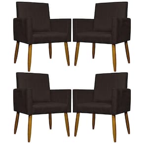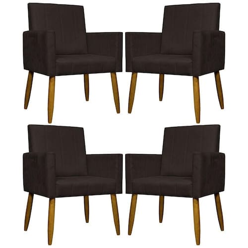 KIT 4 POLTRONAS MARI SUEDE CORES PÉ PALITO 30 CM CASTANHO