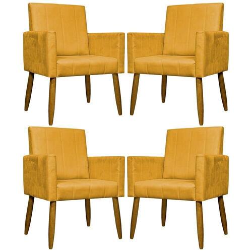 KIT 4 POLTRONAS MARI SUEDE CORES PÉ PALITO 30 CM CASTANHO