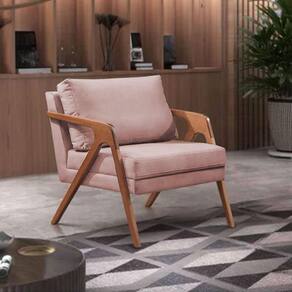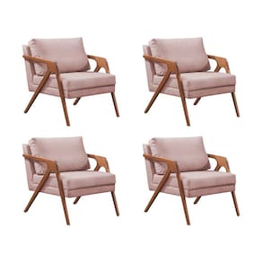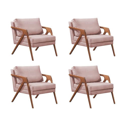 Kit 4 Poltronas Decorativas Mona Premium Base Madeira Maciça Veludo Rose - Rosa