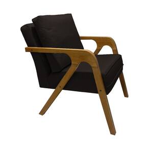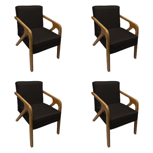 Kit 4 Poltronas Decorativas Pés em Madeira Maciça Monaco Linho Marrom Escuro
