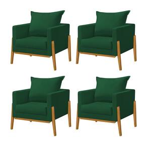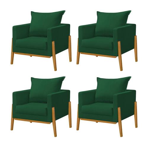 Kit 4 Poltronas Living Base e Pés em Madeira Maciça Madagascar Veludo Verde