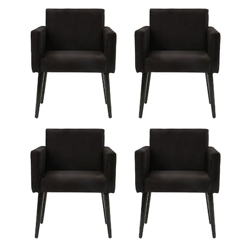 Kit 4 Poltronas Luca Tecido Suede Para Recepção - Preto Escolher os móveis para decorar sua casa, pode ser uma das missões mais difíceis. Por isso, a Leali empresa formada por mestres moveleiros para atender a todos os padrões de design, com qualidade e respeito ao consumidor, desenvolveu essa linda peça. Perfeita para transformar sua sala de estar, quarto ou qualquer outro ambiente de sua preferência, a Poltrona Luca leva comodidade, requinte e qualidade ao ambiente, dando um toque todo especial a decoração, combinando design moderno e sofisticação. Produzida com matérias de altíssima qualidade, conta com estrutura em madeira maciça, lindos pés palito de madeira, revestimento em material sintético de alta qualidade que confere durabilidade ao acabamento, além do assento revestido em espuma densidade 26.Tipo: PoltronaModelo: LucaCor: PretoTecido: SuedeDimensões do Produto:Altura: 80cmLargura: 61cmComprimento: 54cmTodos os produtos vão embalados com total segurança.- Montagem será de responsabilidade do comprador. Produto de fácil montagem. Não nos responsabilizamos, no ato da entrega, por subir escadas/elevadores ou transporte por guincho em apartamentos. Eventuais despesas são de responsabilidade do comprador; - Confira antes de comprar as dimensões do produto.ATENÇÃOIMAGENS MERAMENTE ILUSTRATIVAS REALIZADO EDIÇÃO, PODENDO HAVER UMA PEQUENA VARIAÇÃO DE COR DEPENDENDO DE CADA TELA OU MONITOR. Marca: RUD HOUSE