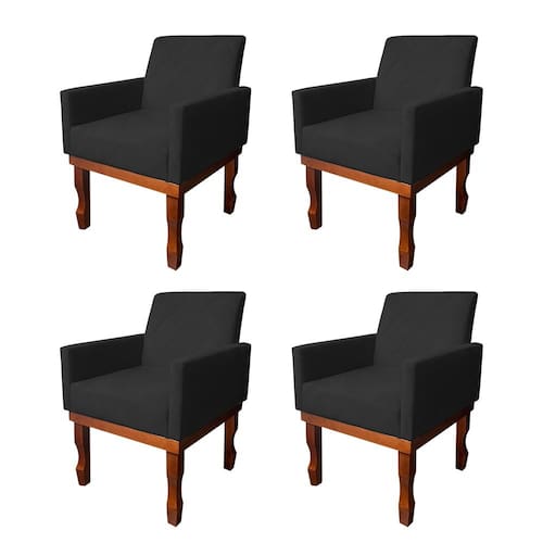 Kit 4 Poltronas Medusa para Recepção Pés de Madeira Maciça Suede Preto - Preto