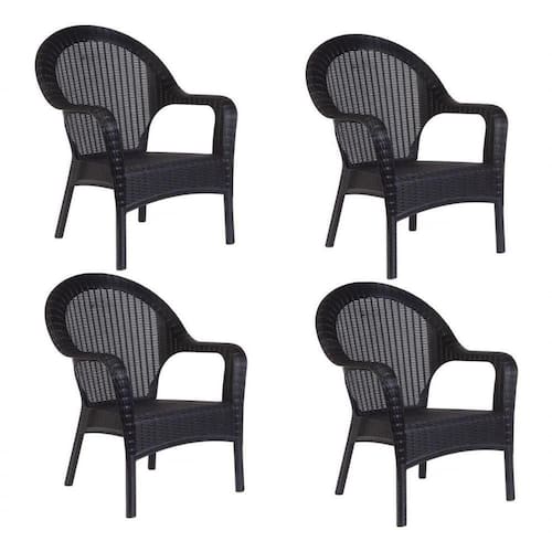 Kit 4 Poltronas Rattan Qatar - Preto Preta Não é plástico texturizado, mas sim rattan sintético. Diferente de tudo que existe no mercado. Você pode ver através das fibras como no rattan orgânico. Feito com plástico composto 100% virgem. Eles podem ser empilhados para otimizar espaço. Medidas da poltrona: Altura total: 93cm Altura do chão ao assento: 38cm Largura total: 72cm Profundidade do assento: 50cm Altura do encosto: 60cm NA