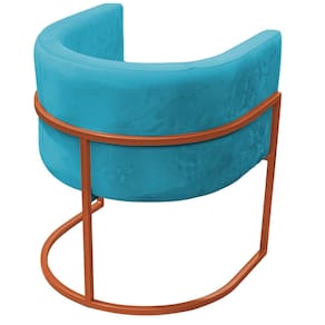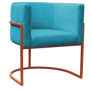 Kit 4 Poltronas Reforçada Decorativa Sala Carla Base Ferro Bronze Suede Azul Tifany - Azul Turquesa
