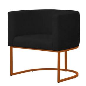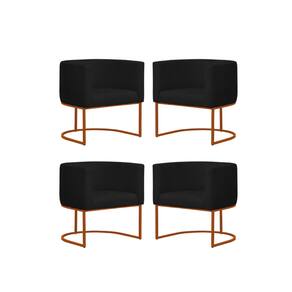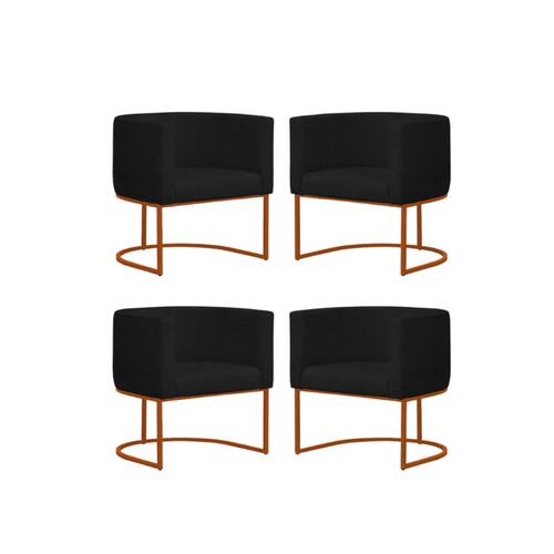 Kit 4 Poltronas Reforçada Decorativa Sala Gabriela Base Ferro Bronze Suede - Preto
