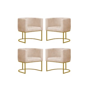 Kit 4 Poltronas Reforçada Decorativa Sala Gabriela Base Ferro Dourada Suede - Bege