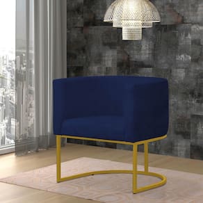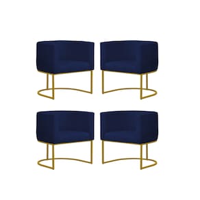 Kit 4 Poltronas Reforçada Decorativa Sala Gabriela Base Ferro Dourada Suede - Azul Marinho