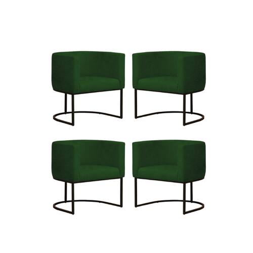 Kit 4 Poltronas Reforçada Decorativa Sala Gabriela Base Ferro Preta Suede - Verde