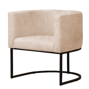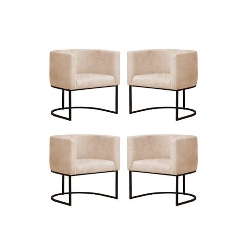 Kit 4 Poltronas Reforçada Decorativa Sala Gabriela Base Ferro Preta Suede - Bege