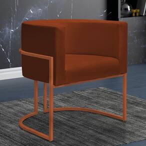 Kit 4 Poltronas Reforçadas Decorativa Sala Nayara Base Ferro Bronze Suede Terracota