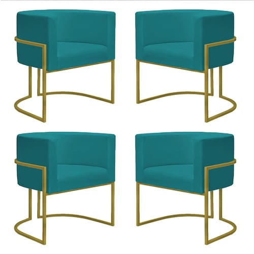 Kit 4 Poltronas Reforçadas Decorativa Sala Nayara Base Ferro Dourado Suede - Azul