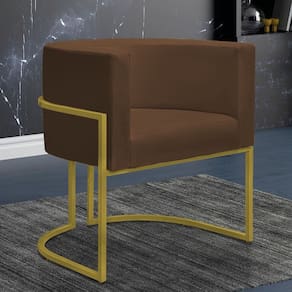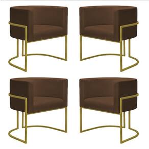 Kit 4 Poltronas Reforçadas Decorativa Sala Nayara Base Ferro Dourado Suede - Marrom