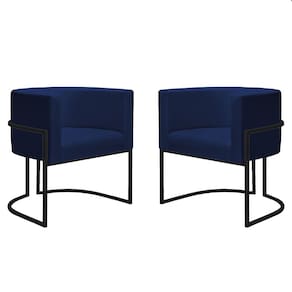 Kit 4 Poltronas Reforçadas Decorativa Sala Nayara Base Ferro Preto Suede Azul Marinho