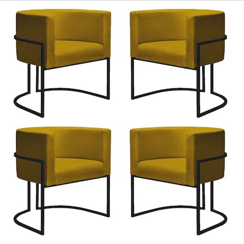 Kit 4 Poltronas Reforçadas Decorativa Sala Nayara Base Ferro Preto Suede - Amarelo
