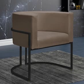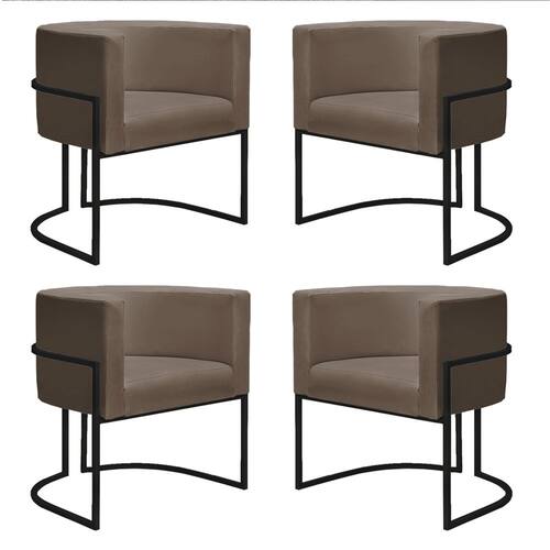 Kit 4 Poltronas Reforçadas Decorativa Sala Nayara Base Ferro Preto Suede - Marrom Cacau