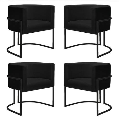 Kit 4 Poltronas Reforçadas Decorativa Sala Nayara Base Ferro Preto Suede