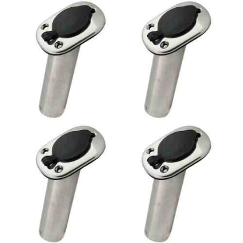 Porta caniço inox inclinado com tampa em nylon 4un Porta vara caniço com 30 graus de inclinação, com tampa em nylon Facilidade e agilidade para sua pescaria em caiaque, barco, lanchas, não prejudica a remada, tendo sempre fácil acesso ao caniço de sua vara de pescar.