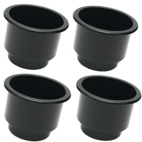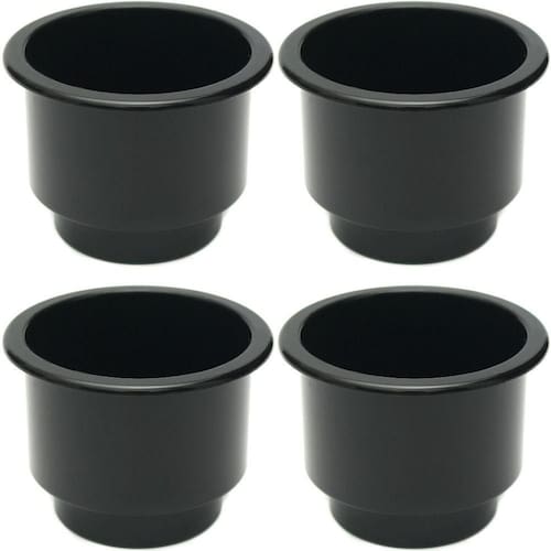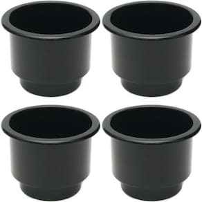 Porta copo e garrafas em pvc preto de embutir 4un Porta copo de embutir para embarcações em pvc na cor preta, com excelente resistência ás adversidades do ambiente marinho. Possui abertura larga que comporta garrafas maiores e apresenta desnível interno com estreitamento para melhor acomodar as garrafas e copos menores.