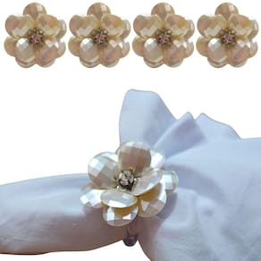 Kit 4 porta-guardanapos flor delicada pérola - sofisticação clássica para qualquer ocasião