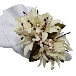 Kit 4 Porta Guardanapo Lírios Da Charlô Branco Este Porta Guardanapo Lírios da Charlô na cor branco é feito de tecido nos tons degradê com a medida aprox. 10cm de comprimento, 7 de largura e 12cm de altura, o anel em madeira na cor amendôa com 4,5cm de diâmetro e 1cm de espessura. Um verdadeiro charme à sua mesa. Quer surpreender seus convidados está aí uma dica que irá alegrar sua mesa. Basta ele e tudo ficará elegante e bonito. Embalagem 4 unidades Ficha técnica - Forma: Circular - Cor: Branco - É produto personalizado: Não - Fonte do produto: tecido - Cor principal: Branco - Comprimento: 10cmx7cmx12cm - Material: Madeira Obs: Não acompanha o guardanapo. Marca: Não Informado