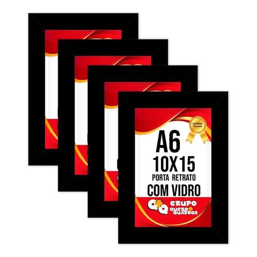Kit 4 Porta Retrato 10X15 Moldura Laqueada Fosco Com Vidro