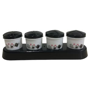O conjunto acompanha uma base de suporte, que pode ser facilmente posicionada na bancada, pia ou prateleira, mantendo os potes sempre à mão.