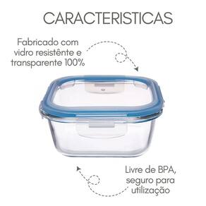 Nome do Produto: Kit 4 Pote de Vidro Hermético Quadrado 1200ml