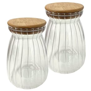 4 Pote Hermético Com ;Tampa De Bambu 1 litro;