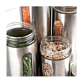 Kit 4 Pote Inox Visor Mimo Style Vítreo Fechamento Hermético - Kit de 4 potes de inox com visor