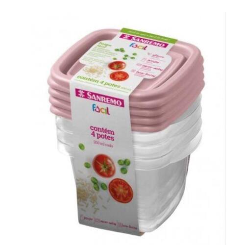 Kit 4 potes para alimentos quadrado 200 ml transparente sanremo Conjunto 4 potes plático sanremo 200ml.