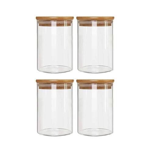 Kit 4 Potes Borossilicato Hermético Tampa Bambu 450ml Class
