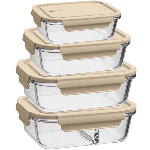Kit 4 Potes de Vidro Borossilicato Retangulares Tampa Herméticos Capuccino UZ Marmitas.