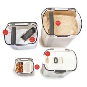 Facilidade de organização: quatro potes distintos que otimizam espaço em despensas, armários e bancadas. Vedação hermética de alta qualidade: impede a entrada de ar e umidade para manter frescor e sabor por mais tempo. Versatilidade de uso: ideal para grãos, açúcar, farinhas, cereais, temperos, snacks e ingredientes do dia a dia. Materiais duráveis e higiênicos: segurança, limpeza e beleza para uso diário. Conjunto completo para quem valoriza praticidade sem abrir mão da organização visual.