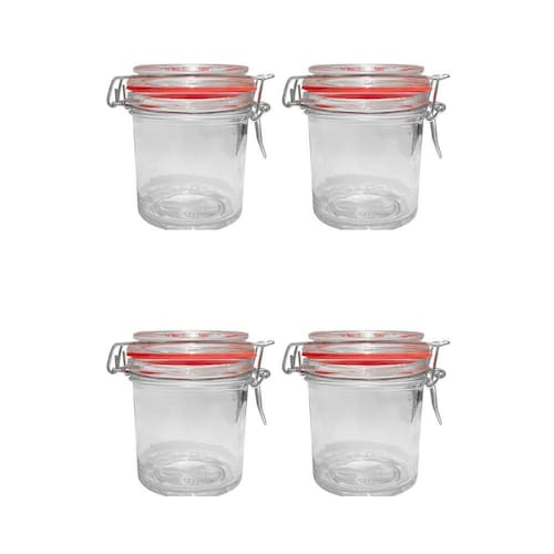 Kit 4 Potes Hermético Vidro Trava Metal 300ml Class HomePerfeito para organização de sua casa e/ou cozinha, com seu fecho hermético de silicone e trava de metal possibilitando melhor conservação dos alimentos.Características: - Altura com Tampa: 10cm- Altura: 8,5cm- Diâmetro: 8,2cm- Capacidade: 300ml- Material: Vidro, silicone e metal.- Conteúdo: 04 PotesCuidados: Para limpeza utilizar detergente neutro e uma esponja macia; Medidas aproximadas. Imagens meramente ilustrativas. Somos a CASAMIGA, uma loja especializada em utilidades doméstica e decoração. Aqui você encontra as tendências em primeira mão