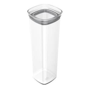 O recipiente pode ser empilhado, assim ocupando espaços reduzidos de armários e bancadas.