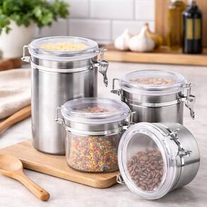 Perfeitos para armazenar grãos, café, açúcar, farinha, massas, temperos, cereais e outros alimentos secos.