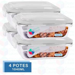 Pote de Vidro com Tampa Hermética Retangular - 1040ml