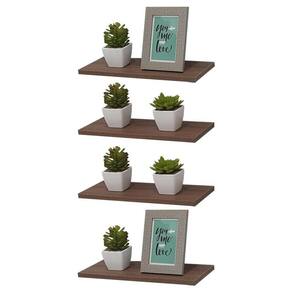 Kit 4 Prateleiras 40 x 15cm Nogal Suporte Invisível. A prateleira Crie Fácil foi desenvolvida pensando em deixar o seu ambiente mais organizado e criativo de forma prática e simples. Produto produzido em MDP de alta qualidade garantindo resistência e durabilidade. A prateleira é acompanhada de suporte para fixação de embutir invisível. Cor: Nogal. Tamanho: 40 x 15cm. Material: Madeira MDP. Fixação: embutir invisível. Instruções de uso e instalação: Para fácil limpeza, utilize pano levemente umedecido. Não utilizar produtos químicos ou abrasivos. Acompanha embalagem com as instruções de montagem e fixação. *Observação: todos os itens de decoração das fotos não acompanham o produto